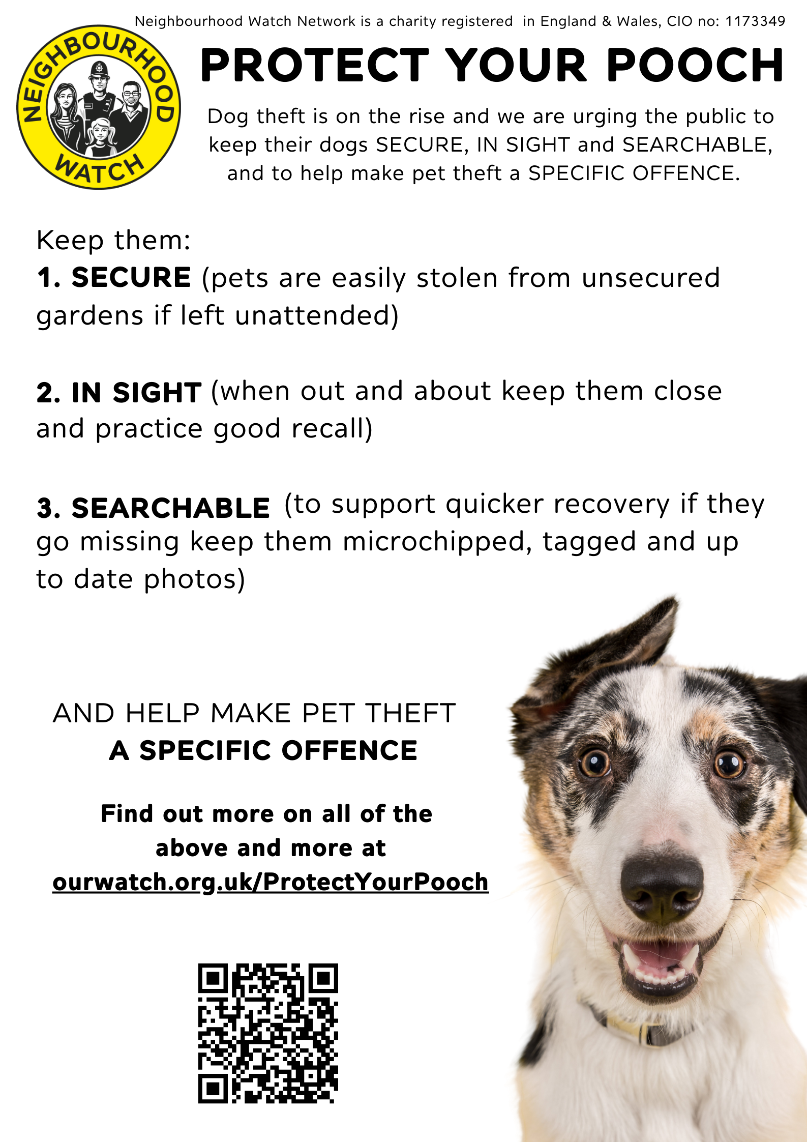 - Help make pet theft a specific criminal offence by signing a petition or writing to your MP. Find out more on www.ourwatch.org.uk/protectyourpooch